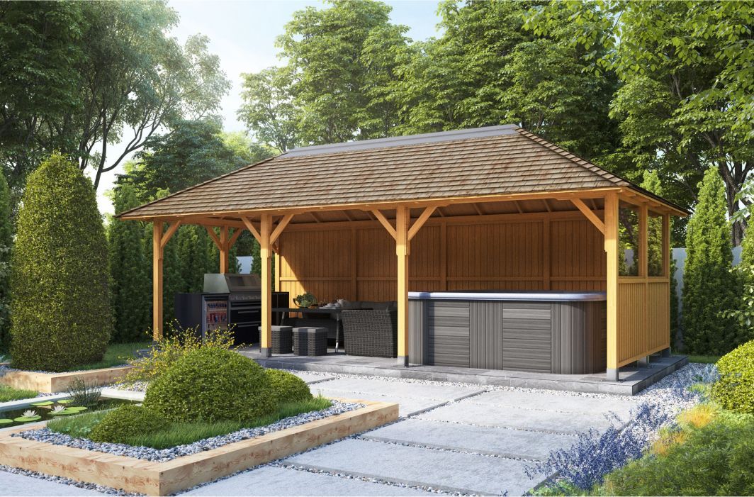 Impress your guests all year round with our 8.0m x 3.5m Oceania, designed to provide a spacious solution for all your entertainment needs. Whether you’re looking for somewhere to house a hot tub or swim spa, relax and grill with friends or host lavish dinner parties, the Oceania is the ultimate garden shelter.
